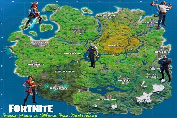 The new boss locations in fortnite's season 3 are spread across the waterlogged regions of the map, but we've tracked them down for you.